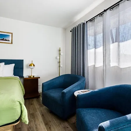 This Palm Springs hotel offers 18 rooms with coffee and tea making facilities, and such modern conveniences as a flat-screen TV with satellite channels and a radio. Bathrooms inlude a walk-in shower and a raised toilet, and such fine comforts as bathrobes and shower caps.